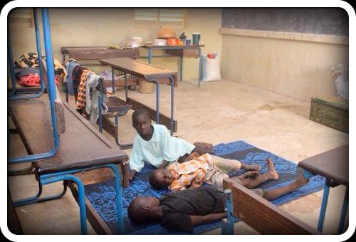 Des enfants réfugiés dans une école de Bamako suite aux inondations, le 30 août 2013