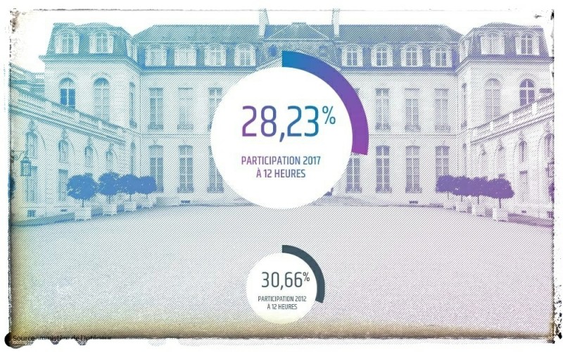 Quid de la participation ? A midi, dimanche, 28,23% des Français inscrits sur les listes électorales ont voté. Au second tour de la présidentielle de 2012, elle était de 30,66% à midi et de 71,96% à 17 heures, avant d'atteindre 81,96% à la fin de la journée. Au premier tour en 2017, elle atteignait 28,54% à midi et 69,42% à 17 heures, avant de finalement s'établir à 77,77% à la clôture des bureaux de vote.