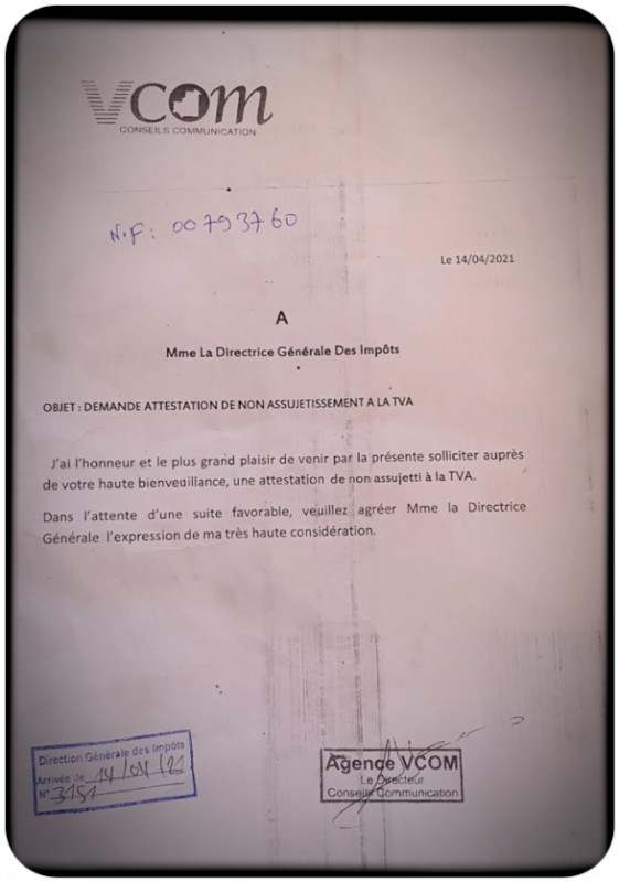 Pour finir, je vous prie de bien vouloir un jour faire votre travail et signer mon attestation de non assujettissement à la TVA car c’est mon droit. Ci-joint une copie de la demande écrite avec le français de vos services. La décharge date du 14 avril. Si vous refusez de le faire, je ne chercherai aucune intervention venant de plus haut pour vous y inviter. Je comprends pourquoi bien des consultants travaillent au noir comme je comprends tout l’intérêt politique de centraliser même la signature de documents disponibles normalement sans intervention : juste avoir un moyen de pression sur toute la république. Tant qu’il ne s’agit que de la raison d’Etat, on pourrait comprendre le procédé mais il s’agit manifestement d’autre chose à savoir peut-être des intérêts privés inavouables.