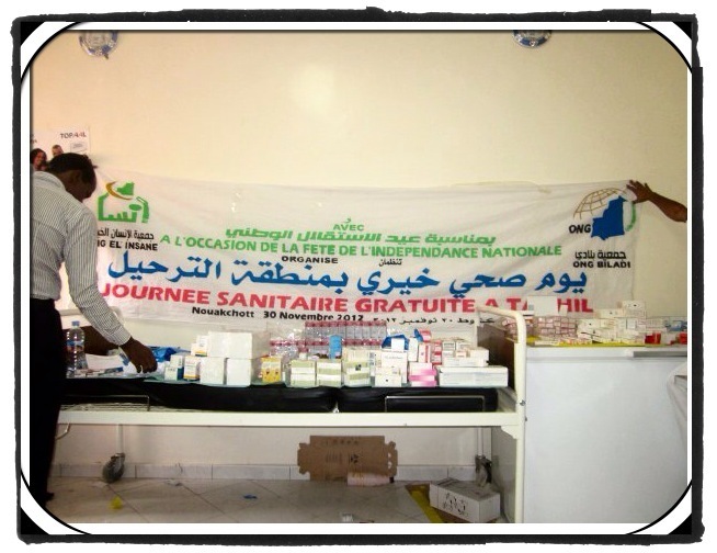Dans le cadre des festivités commémoratives du 52ème anniversaire de l’indépendance nationale, l’ONG Biladi en collaboration avec l’ONG El Inssane a organisé une journée médicale volontaire au dispensaire de la "Tarhil" (moughataa de Riyad). Texte de L'Authentique et images de Biladi http://odh-mauritanie.com/actualite-10939-ong-biladi-organise-une-journee-medicale-dans-la-zone-de-tarhil.html