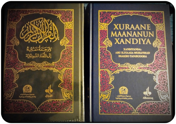 Ce 24 Avril 2021 qui correspond au 12 Ramadan 1442 AH est marqué par la sortie publique d'un Livre écrit par un lettré intellectuel soninké en sciences islamiques, cheikh Muhammad Diakho Tandjigora connu Abu Alyas. Il est originaire du Sénégal , du village de Kougneny en pays soninke. Cet ouvrage est la traduction intégrale du sens des versets du Saint Coran de l'arabe vers la langue soninké (en alphabet latin). Ainsi les 114 Sourates (petits chapitres) faisant 6 236 versets ou signes, qui composent le Livre Saint de l'Islam, la religion de plus d'un milliard d'individus à travers le monde, sont fixés intelligiblement dans l'idiome soninké académique en vigueur de nos jours. Le Coran ou le Qur'ân, la Source originelle et originale de la Dernière Révélation Divine descendue sur le Prophète Muhammad (psl) il y a 14 siècles en Arabie.